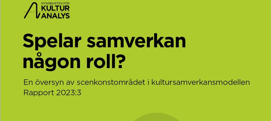 Myndigheten för kulturanalys (Kulturanalys) publicerar idag en översyn av scenkonstområdet i kultursamverkansmodellen. I rapporten Spelar samverkan någon roll? presenteras en historisk tillbakablick över scenkonstens regionalisering, en kvantitativ kartläggning av scenkonst i kultursamverkansmodellen och en kvalitativ fördjupning i sex regioner med fokus på regionerna och de regionala scenkonstorganisationernas samverkan med kommuner.